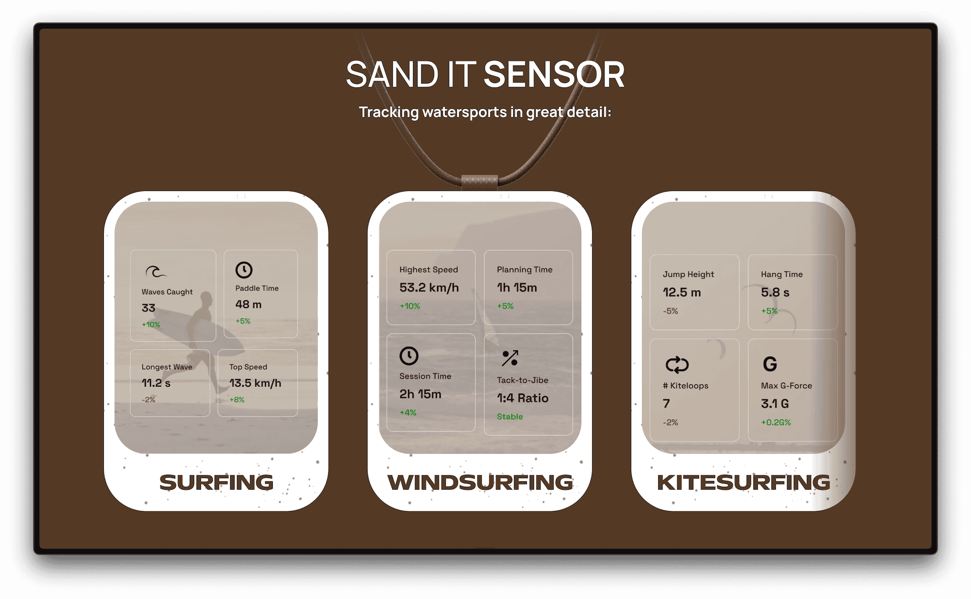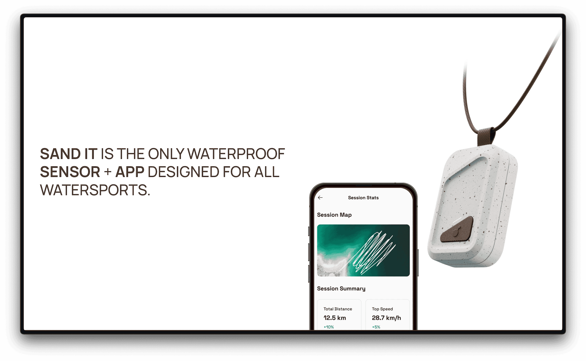 SAND IT is a waterproof sensor and app made for all watersports. It helps riders track their performance, improve their skills, and connect with a like-minded community.